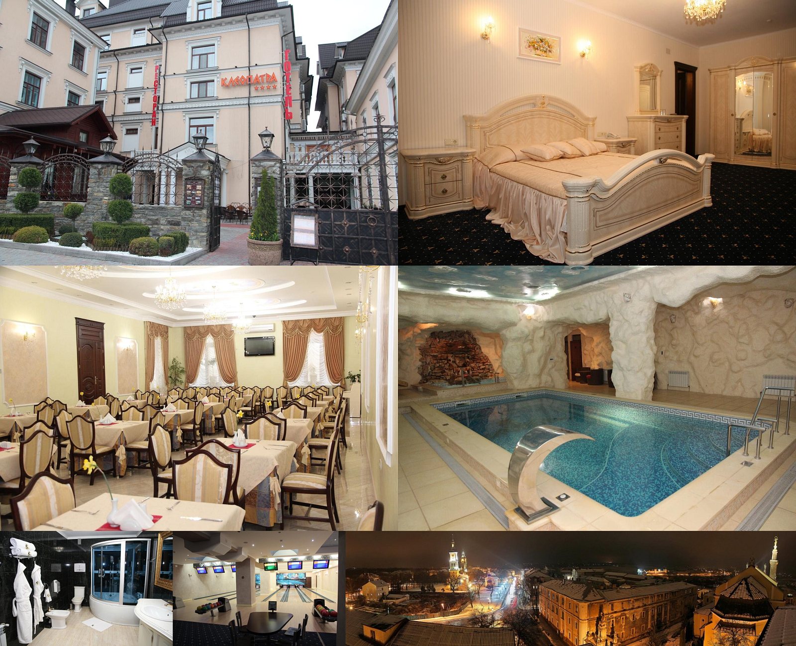 Ár: V ceně jsou snídaně, bazén, bowling i biliard. Pokoj Standard 2-lůžkový 1.350-1.500 UAH/pokoj/noc (přistýlka 300 UAH/noc), Standard 3-lůžkový 1.850 UAH/pokoj/noc (přistýlka 300 UAH/noc), Pololux 2-lůžkový 1.900 UAH/pokoj/noc (přistýlka 300 UAH/noc), Lux 2-lůžkový 2.250 UAH/pokoj/noc (přistýlka 300-600 UAH/noc). Ceny jsou konečné (včetně všech poplatků, povlečení i energií) a platí i při ubytování jen na 1 noc.