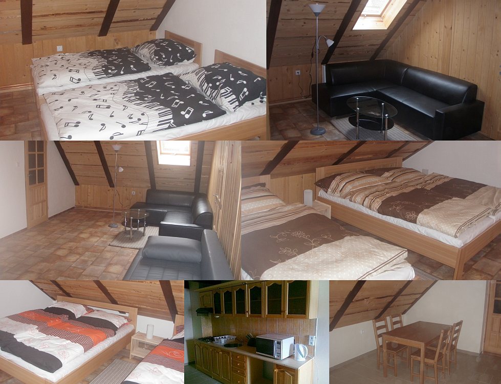Szállás: Útulná venkovská chalupa procházející kompletní rekonstrukcí (vnější fasáda na obnovu ještě čeká, proto se nenechte odradit prvním dojmem). V chalupě je obyvatelné patro pro 10 osob. Nachází se zde 3 ložnice (2x3, 1x4 lůžka), plně zařízená kuchyň s jídelním koutem, předpokoj s posezením a 2 koupelny se sprchovým koutem a WC. V přízemí jsou momentálně nevyužité prostory, úložiště lyžařského vybavení, WC a kotelna. Vytápění celé chalupy zajišťuje kotel na tuhá paliva. Celá chalupa je nekuřácká.
