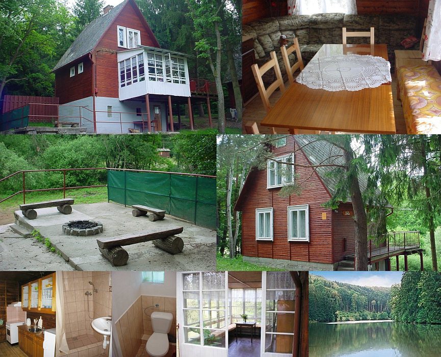 Szállás: Dvě sousední rekreační chaty, každá pro 12 osob. Obě chaty jsou velikostně i vybavením stejné. V každé chatě je společenská místnost (kuchyňská linka, nádobí, sporák, lednice, mikrovlnka, varná konvice, jídelní stůl, rohová sedací souprava, TV, DVD), 3 ložnice (3x4 lůžka, některé postele jsou patrové), veranda s terasou, soc. zařízení. Pitná voda v barelech, užitková ze studny. Vytápění kamny a přímotopy. Ohniště, gril, posezení, houpačky, pískoviště. Příjezd autem po asfaltové cestě až k chatám.