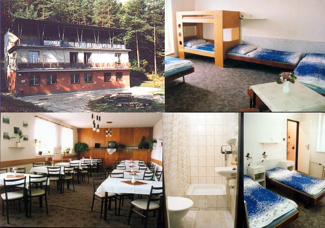 Szállás: Rekreačné stredisko hotelového typu v 12 izbách (2x4, 4x3, 4x2, 2x5 lôžok). Každá izba má samostatné WC, umývadlo, sprchový kút, chladničku, TV, video. Prosíme hostí, aby si priniesli prezuvky. Celodenné stravovanie (domáca strava) s možnosťou dojednať polopenziu a detské porcie. Spoločenská miestnosť, stolný tenis, stolný futbal, bufet, požičiavanie videokaziet, kníh, športových potrieb (lopty, tenisové rakety), pripojenie na internet. Grilovanie nad ohniskom.