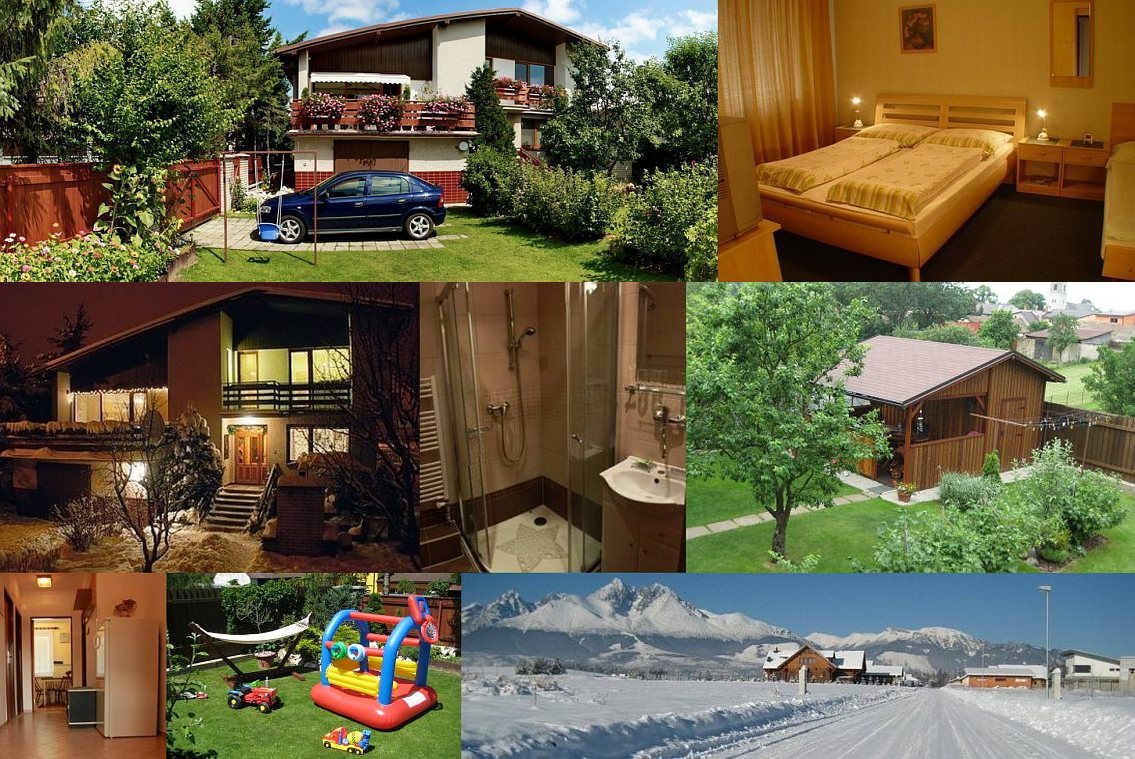 Szállás: Privát (apartmán) max. pre 6 osôb. V apartmáne sú dve 3-lôžkové izby vybavené FTV s káblovým príjmom, WiFi internet + notebook, kompletne zariadená kuchyňa (plynový sporák, chladnička, mikrovlnná rúra, rychlovarná kanvica), šatník, kúpeľňa a WC. Záhradné sedenie s krbom, grilom a nádhernou panorámou Vysokých Tatier. Ubytovanie je v prevádzke iba v letnej sezóne (mesiace 05-09).