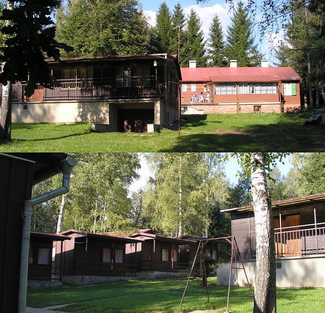 Szállás: Rekreační středisko s letním provozem (16.06.-01.09.). Areál je tvořený šesti menšími chatami, jednou velkou chatou a správní budovou (v ní je společenská místnost s TV a společenskými hrami). Chaty jsou s možností lokálního přitápění. Menší chaty pro 4 osoby, velká má tři pokoje (5-lůžkový a 2x 4-lůžkový). V chatě vybavený kuchyňský kout (vařič, varná konvice, nádobí, lednice). Společné soc. zařízení, ve velké chatě každý pokoj vlastní. K zapůjčení loďka a šlapadlo, v areálu je stůl na stolní tenis, badminton a kuželky.