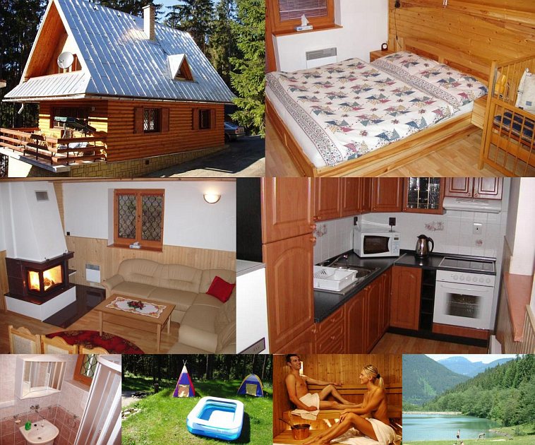 Szállás: Nadštandardne vybavená chata pre 15 osôb, so saunou. 4 spálne (1x2, 1x2 + detská postieľka, 1x6, 1x5 lôžok). 3x kúpeľňa (2x sprchovací kút, 1x vaňa), 3x WC. Spoločenská miestnosť (krb, gauč, konferenčný stolík, FTV + SAT+ DVD), jedálenský kút, kompletne zariadená kuchyňa (chladnička s mrazničkou, el. sporák s rúrou na pečenie, mikrovlnka, kanvica, umývačka riadu). WiFi grátis. Lyžiareň. Terasa na prízemí, balkón na poschodí. Bezplatné parkovisko. Trávnatá plocha pre deti. Drevo do krbu. Vonkajšie ohnisko, záhradné posedenie, gril, kotlík na guláš.