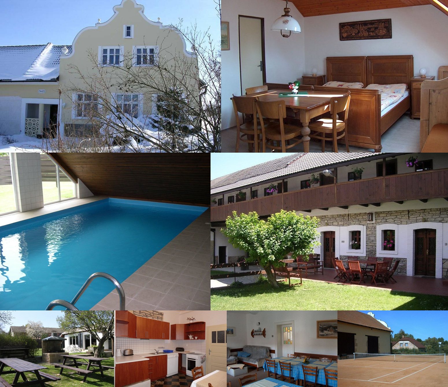 Szállás: Penzion ve zrekonstruovaném stavení barokního statku z minulého století. Vlastní krytý vyhřívaný bazén 4x8 m, stolní tenis, koš na košíkovou, antukový tenisový kurt, travnaté hřiště. V penzionu je 6 útulných pokojů (2x2, 1x3, 2x4 lůžka) a 1 apartmán (1x5 lůžek), každý pokoj i apartmán má vlastní soc. zařízení. Společná plně vybavená kuchyňka (lednice s mrazáčkem, el. sporák, myčka, mikrovlnka, varná konvice, topinkovač). Prostorná jídelna, možnost domácí polopenze. Společenská místnost se samoobslužným barem, kde si můžete načepovat pivo. Uzavřený dvůr s posezením a možností parkování. V zahradě za domem je gril a dětský koutek.
