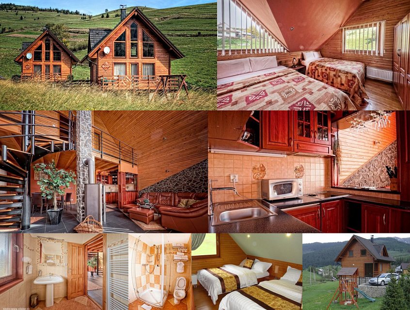 Szállás: Dve luxusné novopostavené zrubové chaty, každá s kapacitou 8 osôb. Chaty sú vybavené zabezpečovacím systémom a centrálnym elektrickým vykurovaním. Predsieň s úložným priestorom, kúpeľňa, jedálenský kút, plne vybavená kuchyňa (mikrovlnná rúra, chladnička s mrazničkou, umývačka riadu, varná doska, varná konvica, barový pult, riady), hala, krbová pec pre spríjemnenie zimných večerov, rohová sedacia súprava, LCD TV-SAT, DVD, CD, podkrovie (2x spálňa). Veľká priestranná terasa s výhľadom. Každá chata má 2 parkovacie miesta. Grill. Kvalitné matrace a damaškové posteľné prádlo. Postieľka a vanička pre malé deti.