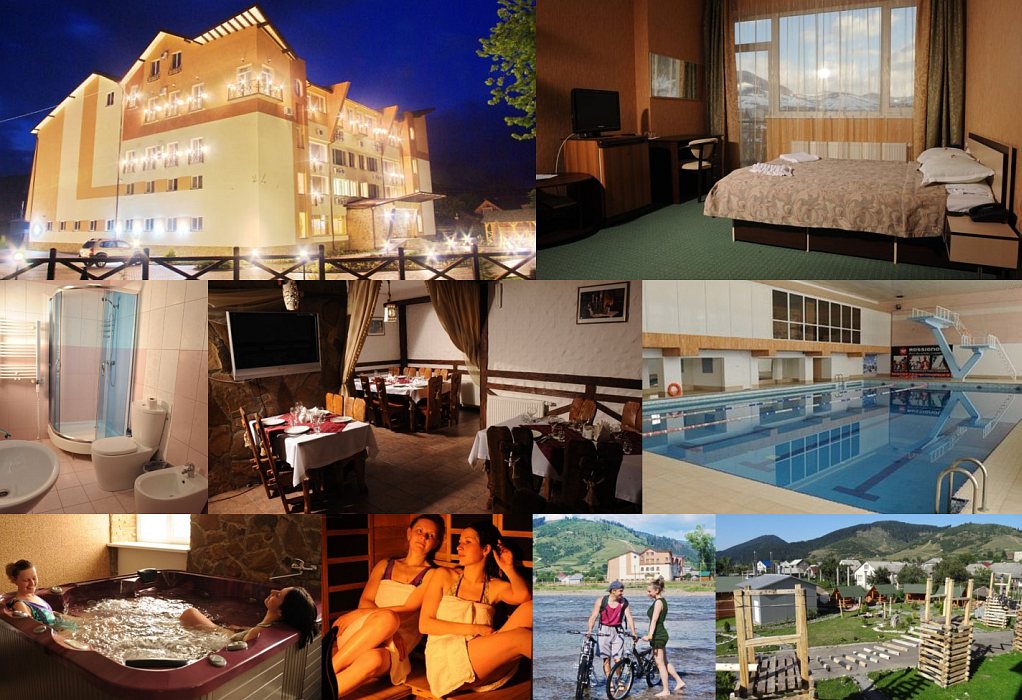 Ár: Ceny jsou uvedeny včetně snídaně, užívání bazénu, WiFi a parkování. Pokoj 2-lůžkový Tvin 850 UAH/pokoj/noc, Standard 1.050 UAH/pokoj/noc, zlepšený Standard 1.050 UAH/pokoj/noc, pololuxusní 1.250 UAH/pokoj/noc, luxusní 1.450 UAH/pokoj/noc. Přistýlka 250 UAH/noc (děti 6-12 let 150 UAH/noc, do 6 let bezplatně). Ceny platí od 15.01. do 25.12. (na Silvestra je příplatek). Pro návštěvníky LevneUbytovani.net sleva 10 % z běžných cen (ve zdejších cenách není sleva započítána). Különleges ajánlat csak a látogatóknak OlcsoSzallas.net (LevneUbytovani.net)!